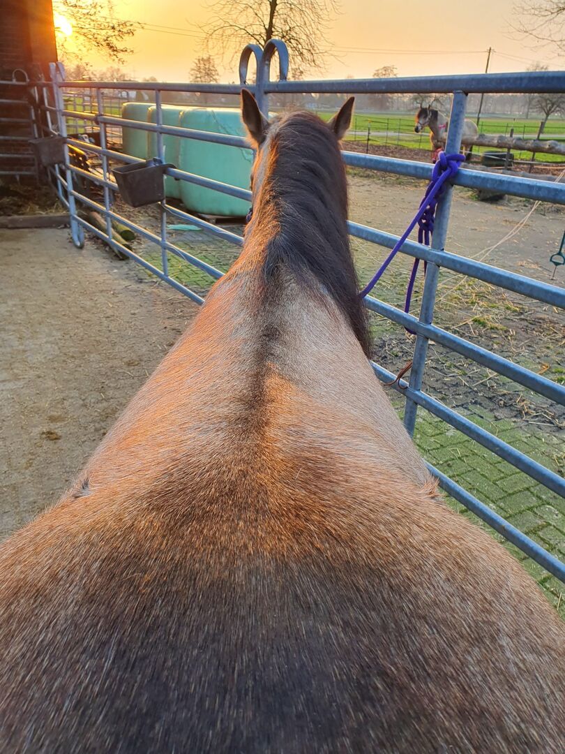 Hij is super braaf bij de hoefsmid en is blootsvoets. Hij kan overal mee naar toe. Hij verliest zijn hoofd niet in nieuwe situaties en is makkelijk te leiden.