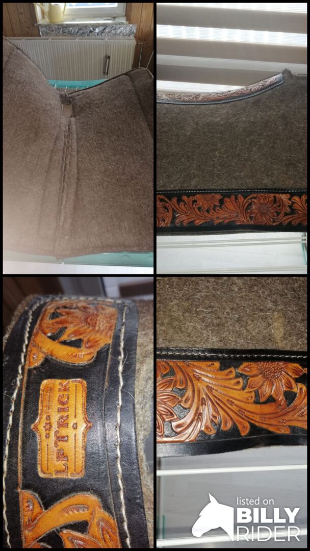 Vilt pad, Western pad van LP Trick, absoluut als nieuw - Western onderlegger van hoogwaardig wolvilt met gedetailleerd keurmerk. Met een dikte van 3,1 cm en een zacht oppervlak is het aanhalig aan de paardenrug en zorgt het voor een goed kussen tussen de paardenrug en het zadel met ruitergewicht. In tegenstelling tot dunnere zadeldekjes behoudt dit dekje een zeer goede vulling, zelfs na intensief gebruik.