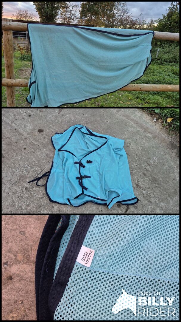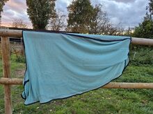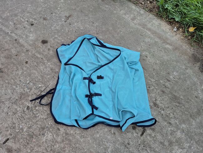 Vliegendeken 155 cm - Zelden gebruikt vliegendeken in een mooie kleur, turquoise met donkerblauwe stiksels. 155 cm, topconditie. Als set met het vliegenmasker voor beide 30€.