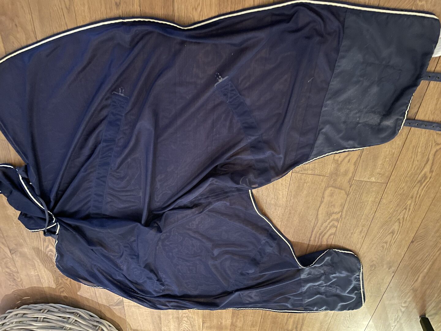 Vliegendeken Kantrie Gr. 125 - Hallo, Wij verkopen een zeer goed bewaard gebleven Kantrie vliegendeken in maat 125. Helaas hebben we de buikbanden niet meer die bij het kleed passen.