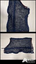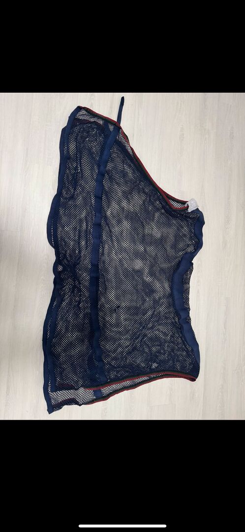Vliegendeken maat 125 - Vliegendeken maat 125 In donkerblauw, niet meer de meeste maar voldoet aan zijn doel. Is relatief kort in de ruglengte maar lang naar beneden. Particuliere verkoop dus geen garantie of retour. Verzending mogelijk tegen vergoeding.