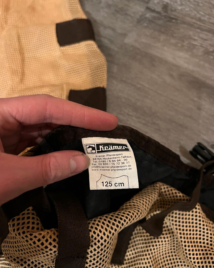 Vliegendeken rijkleed 125 Engels vliegendeken - Ik verkoop een zeer zelden gebruikte vliegendeken in maat 125 met franjes aan de zijkant. De deken heeft ook een nekgedeelte en een hoofdband aan het nekgedeelte om de deken op zijn plaats te houden. De deken wordt uiteraard fris gewassen geleverd.