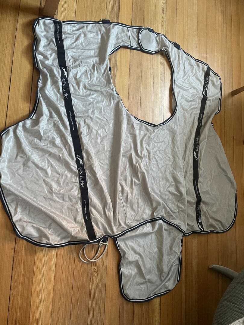 Verkaufe unbenutzte Fliegen-Ausreitdecke von Felix Bühler in 125, da sie uns leider nicht passt.