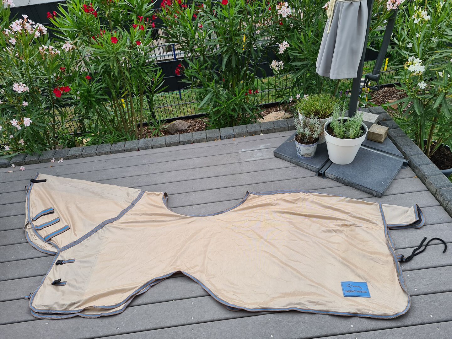 Vliegendeken, Vliegendeken 155 - Vliegendeken van Thermomaster. Maat 155cm. Slechts één keer gebruikt, want hij was helaas te klein. Nekgedeelte kan niet worden opgerold. Geen haar in het klittenband