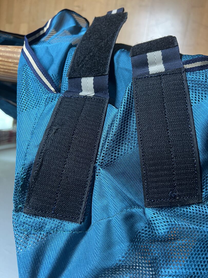De deken kan met of zonder halsstuk gedragen worden, de halslijn is groot genoeg voor een westernzadel.