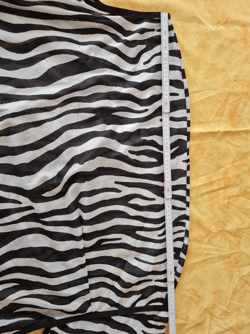 Zebra vliegendeken met halsstuk, afneembaar, Horse Guard merk, zwart en wit, Maat M (was voor een full-size pony, die dekenmaten 115-130 gebruikte) Lengte deken ca. 125 cm, zie foto's Lengte achter zadel ca. 70 cm, zie foto