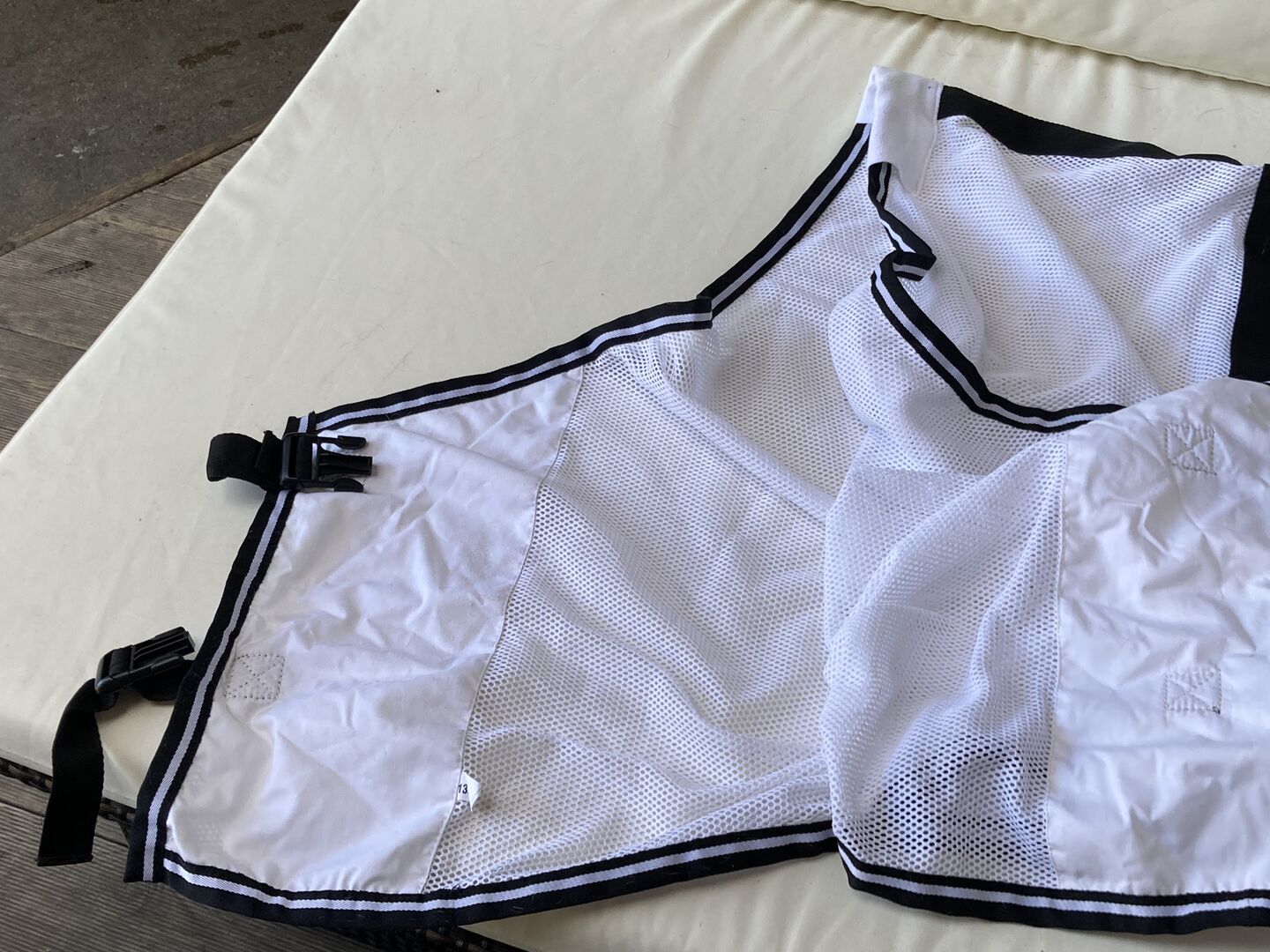 Vliegendekens wit Gr 125 & 135 cm - Witte vliegendekens in de maten 125cm en 135cm. Schoftrand, met buikband en beenbanden, prijs per stuk.