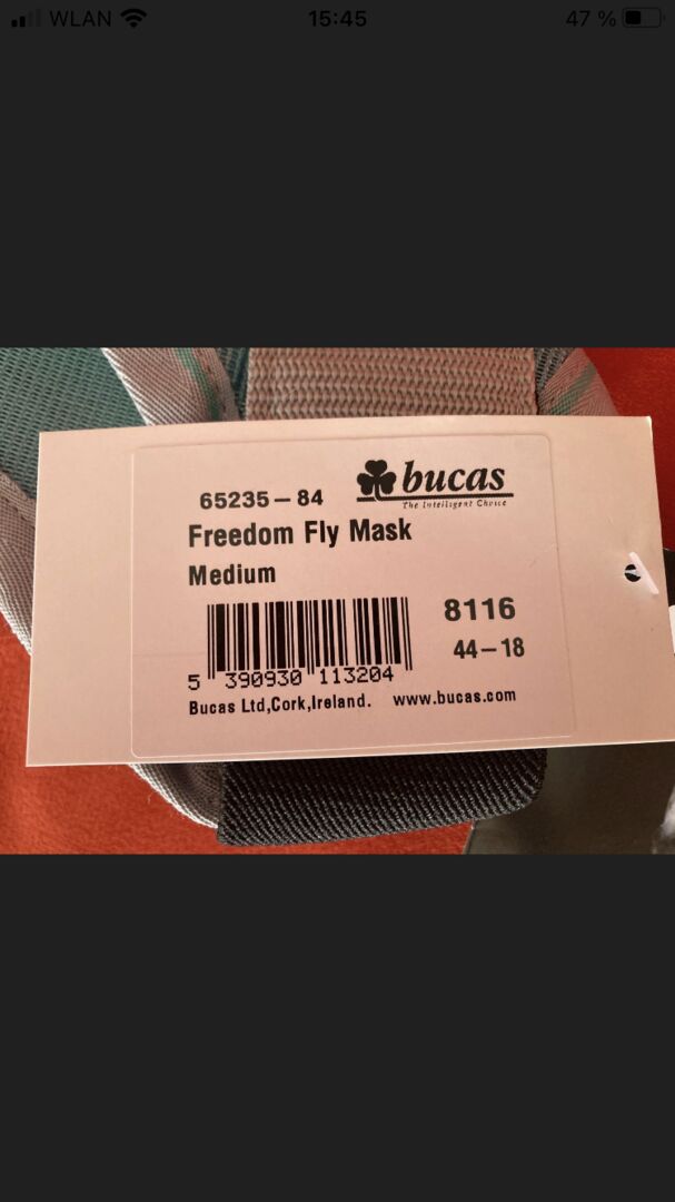 Vliegenmasker - Gekocht op de beurs in Düsseldorf in het weekend en helaas past dit masker niet op mijn volbloed Arabier - te groot. Het masker is maar één keer gepast en alle labels zitten er nog aan.