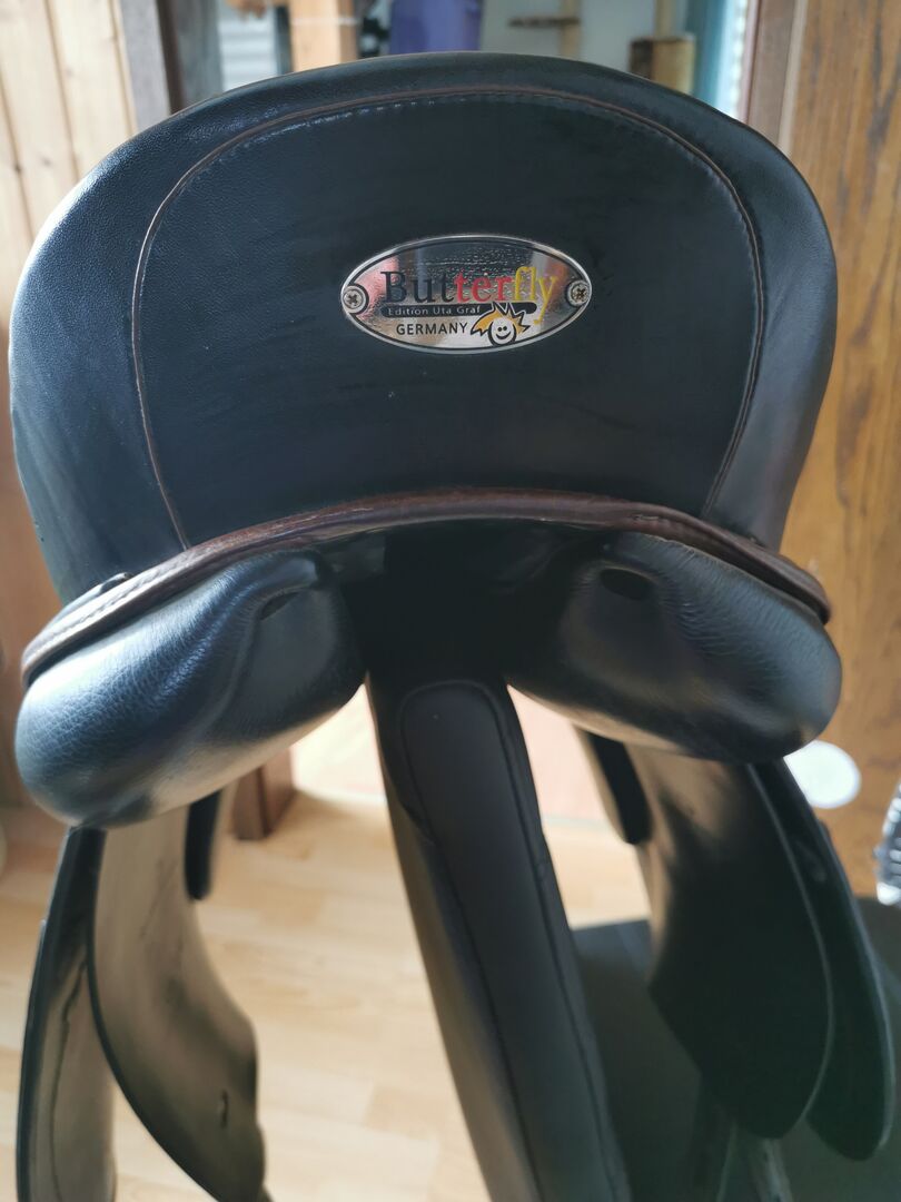 Vlinder dressuurzadel Uta Gräf 18 inch - Te koop hier het Butterfly dressuurzadel Uta Gräf 18 inch, zadelklep verdubbeld,
