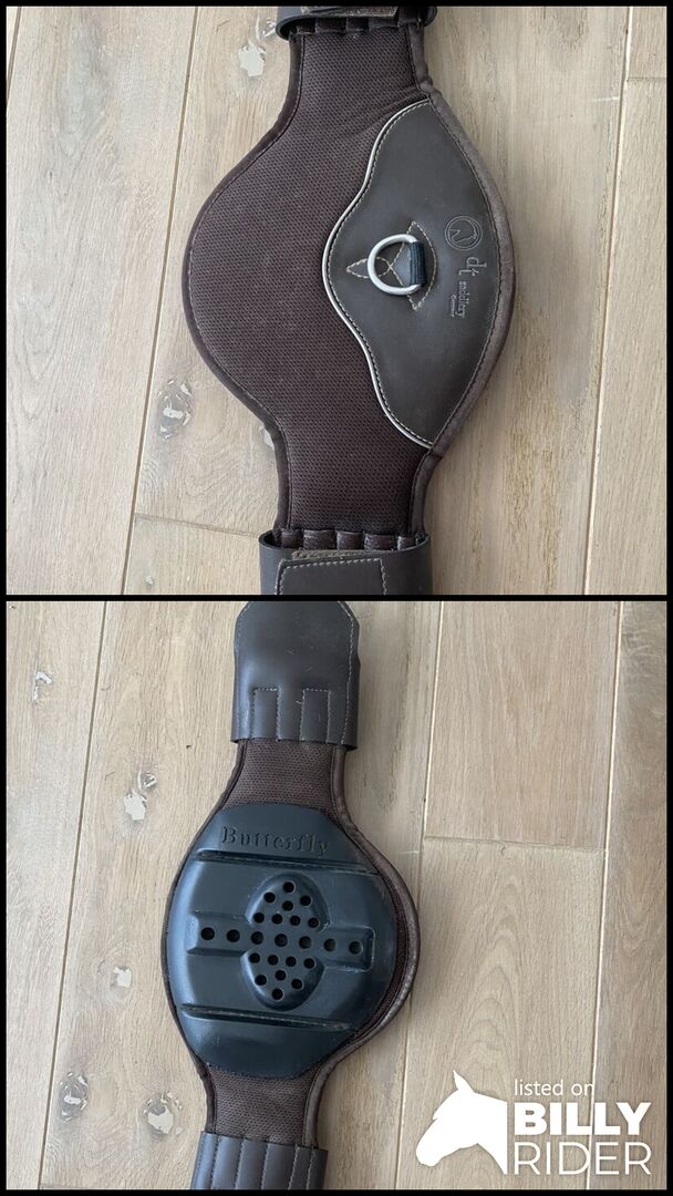Vlinder Zadel Singel Rainer - Originele prijs is 129€ Lengte 45 cm De korte singel Rainer van Butterfly is gemaakt van ademend MEMOFOAM® materiaal, dat door zijn semi-elastische eigenschappen een hoog draagcomfort garandeert. (MEMOFOAM® wordt zacht door lichaamswarmte en heeft een materiaalgerelateerde elasticiteit). Het zacht gevoerde buikstuk van synthetisch rubber voorkomt dat het zadel wegglijdt. De ergonomische snit met grote elleboogruimte leidt tot een optimale drukverdeling en ontlast het borstbeen. Met roestvrijstalen rolgespen. De Rainer korte singel is ideaal voor paarden die last hebben van singelbeperkingen.