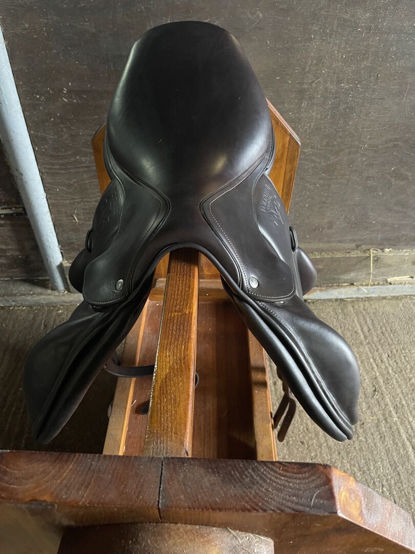 Beautiful chocolate brown 17.5” medium monoflap saddle with 2A flap. Lovely leather has been lightly used after buying brand new from Voltaire at the end of 2021. Comes with cover. 50cm stud girth available also Paypal accepted