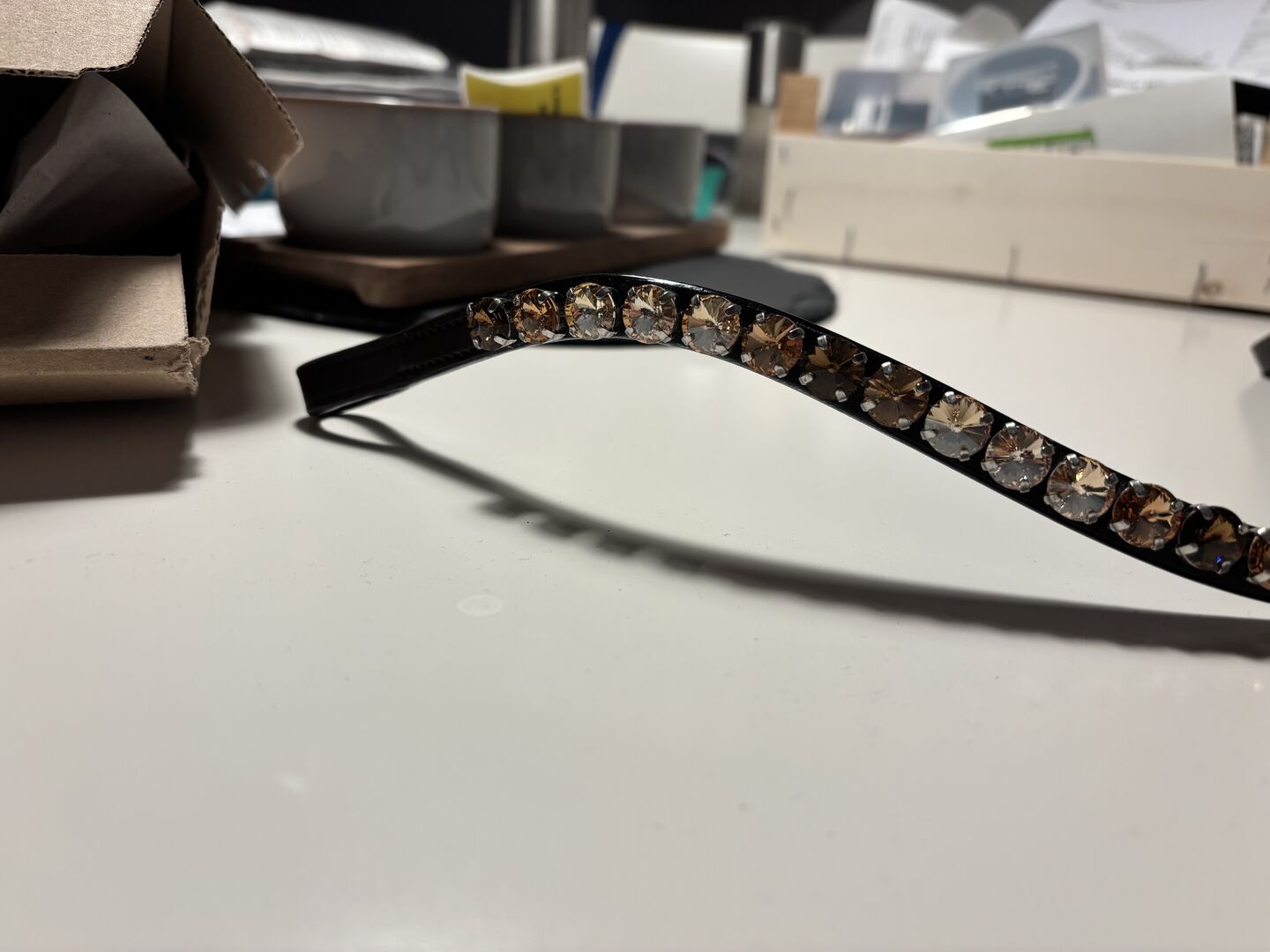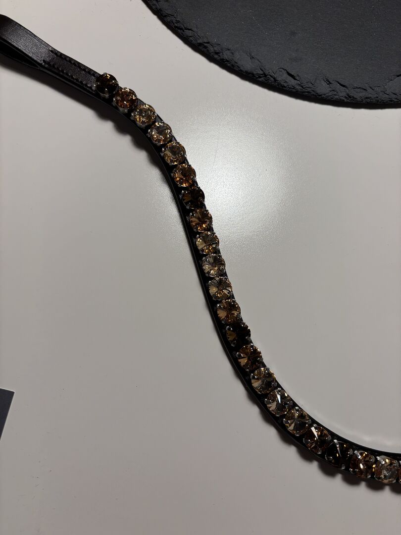 Voorband Ivy paardenmode WB - Ik verkoop een nieuwe ongedragen wenkbrauwband van Ivy horsefashion in de leerkleur bruin maat WB. Het is de Rivoli frontriem in de steenkleur R06 Hazelnut Waves. Het is nooit op het paard geweest.