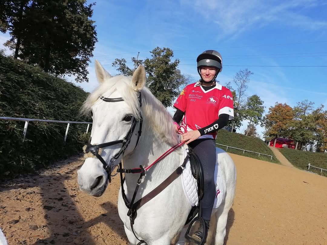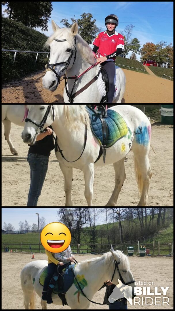 Vrijetijdspony/Camargue merrie - Vuelta de Maguelonne is een 16-jarige merrie, ongeveer 1.42 en lief, aanhankelijk... Maar ook ambitieus. Ze houdt van werken en is altijd hard aan het werk. Geweldig voor kleine kinderen aan de longe of aan de teugel. Ze houdt er niet van om te veel vastgehouden te worden tijdens het vrij rijden. Daarom eerder ongeschikt voor complete beginners/volwassenen bij vrij rijden. Ze reageert ongelofelijk goed op gewichtshulpen en ik vind haar geweldig voor buitenritten, omdat ik het ook graag wat sneller heb. Ze heeft met ons gereden met kleine kinderen, kinderfeestjes... Een beetje springen, horseball en bereden spelletjes. Ze heeft spalken aan de achterkant van beide spronggewrichten, dus ik wil haar niet meenemen voor de grote sport. Maar in de 10 jaar dat ze bij ons is, heeft ze nog nooit zo'n spavin gehad. Ze houdt er ook van om in haar eentje scherpe bochten te maken. Ze is een geweldige merrie (vooral helemaal niet merrie-achtig) en zal daarom alleen naar een 5*-gezin gaan. Voor meer informatie kun je ons bellen via WhatsApp. +436766806766