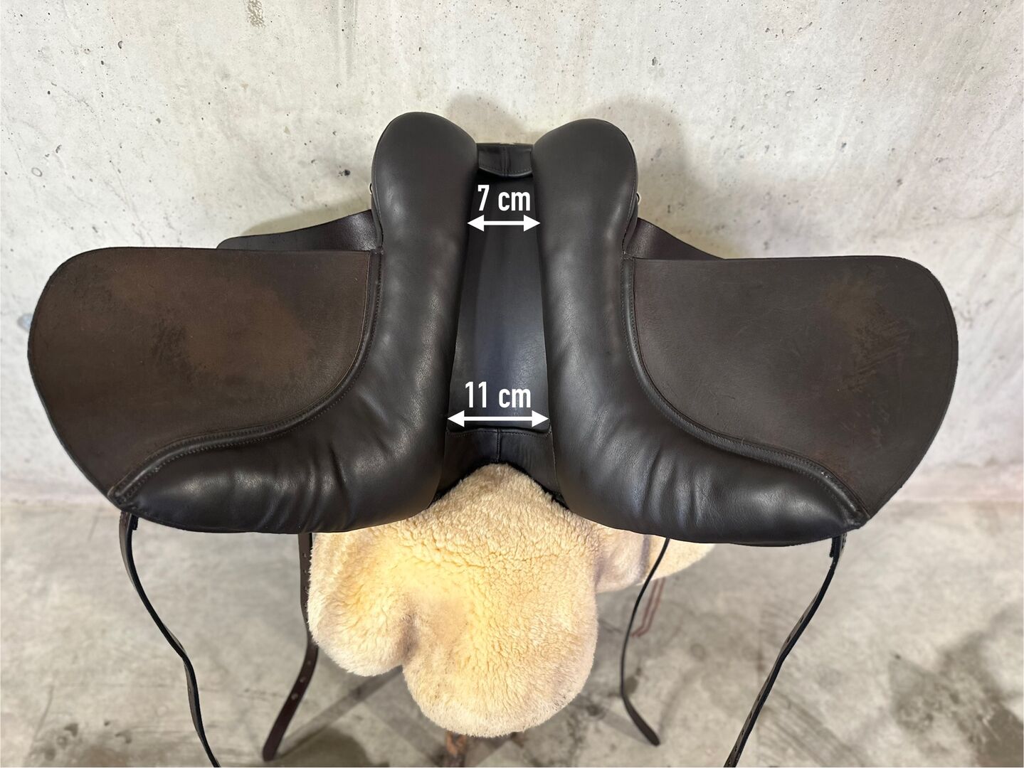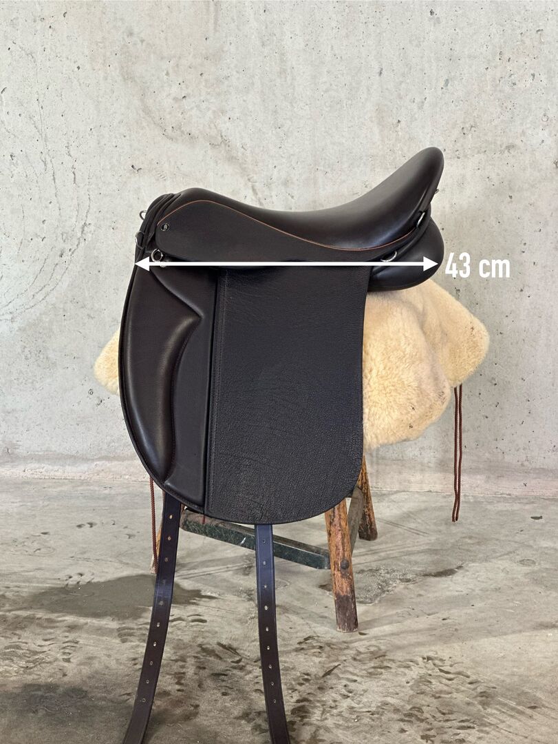 Vrijetijdszadel voor brede korte paarden 40 cm 17" KW 35, verzending op proef, IJslandse Haflinger COB - Kort vrijetijdszadel voor brede paarden, rechte rug, lage schoft - 17" zit - zit ca. 40 cm (totale lengte 43 cm) - KW 35 - breed wervelkanaal (zie foto's voor afmetingen). Verzending op goedkeuring (verzekerd met DHL-trackingnummer).