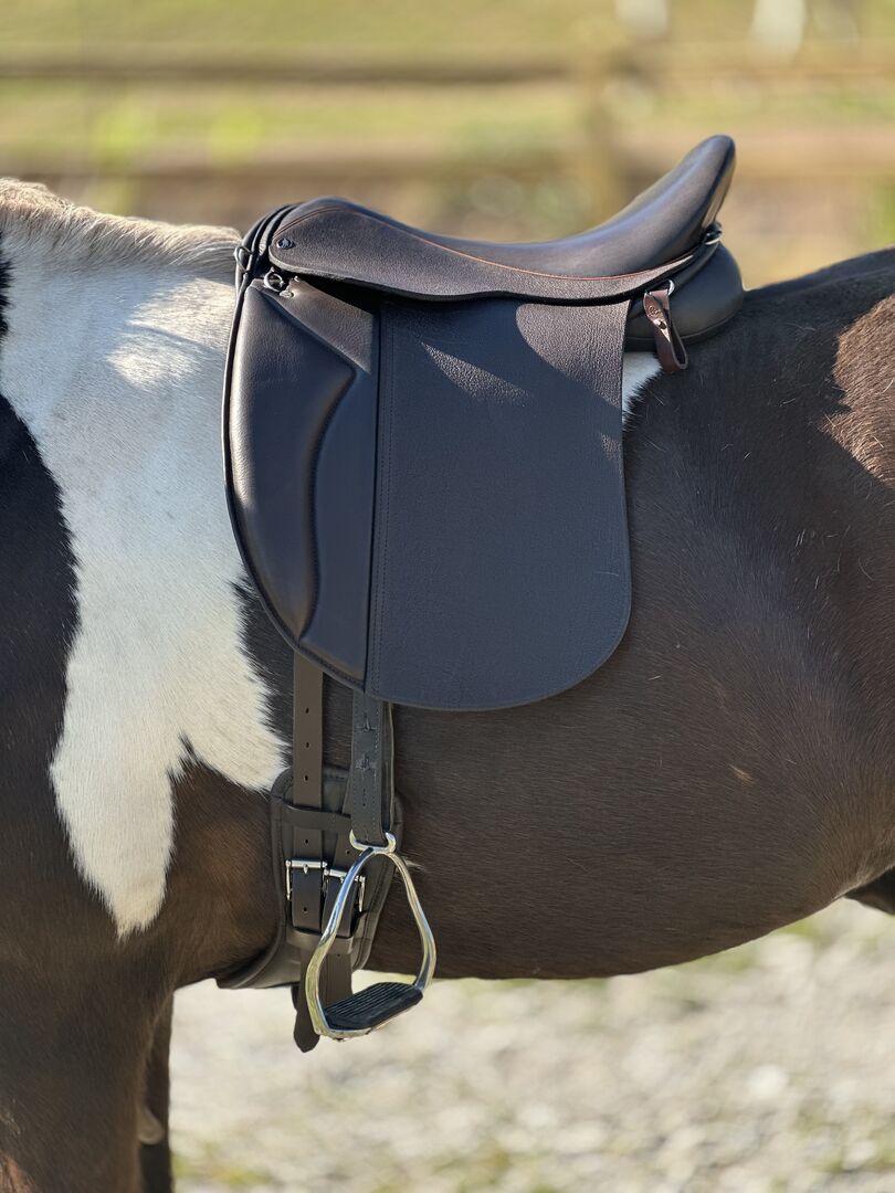 Fabrikant: Jeremy Rudge Zadelmakerij Engeland Model: G5 met ponyboom Zo goed als nieuw demonstratiemodel (2024), 2x gereden Kleur/leder: Bruin buffelleer, cognac bies Vulling: Schapenwol Accessoires: Extra D-ringen, klittenband pads, stijgbeugelstangen, beschermhoes Prijs: €2.200 incl. btw (nieuwprijs €3.900)