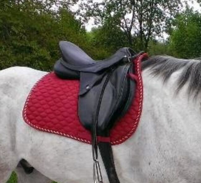 Het zadel past op korte, smalle paarden. De slokdarmplaat is echter verstelbaar en kan dus aan veel verschillende paarden worden aangepast.