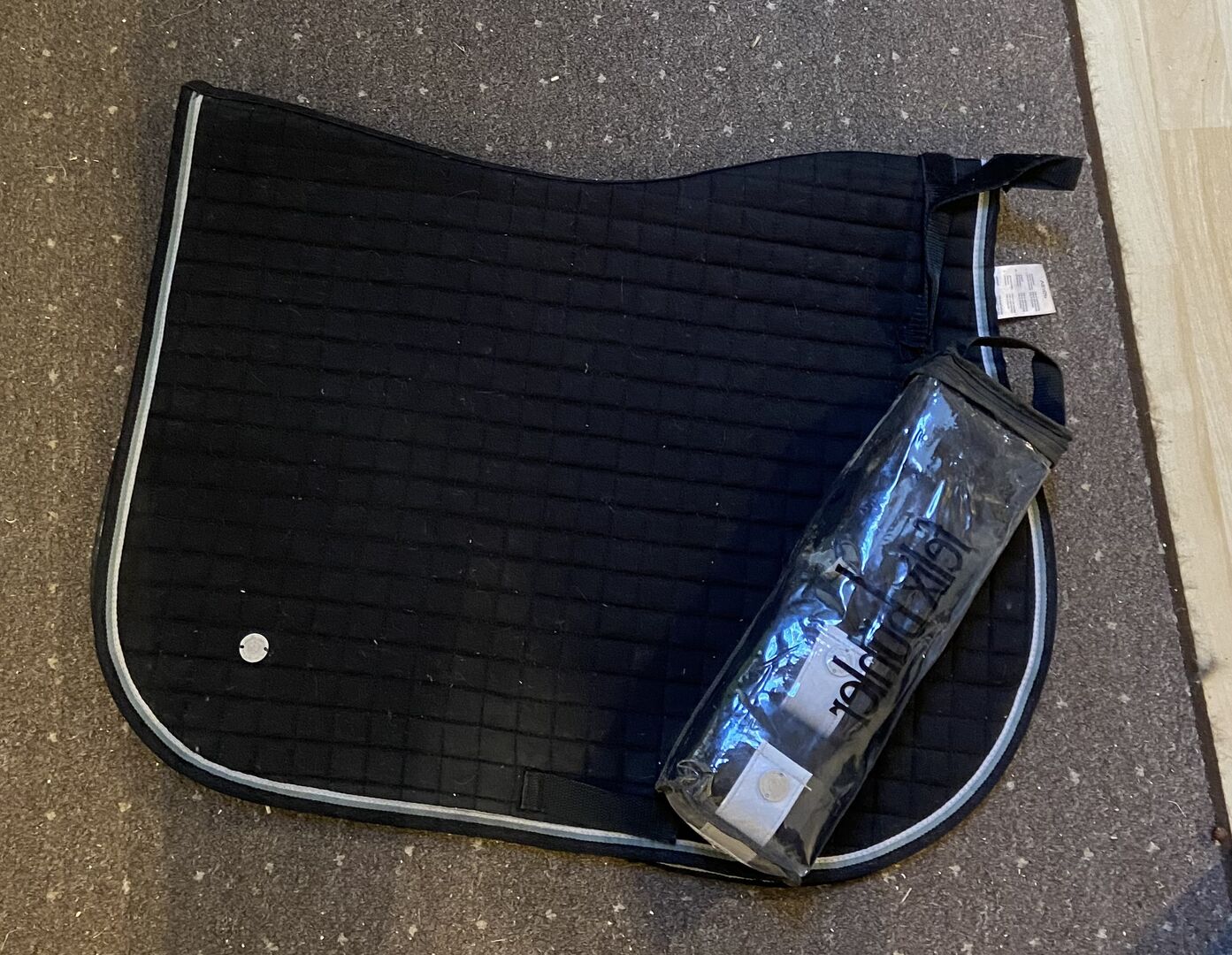 VS Zadeldek - Ik verkoop een zwart zadeldekje in maat VS inclusief bijpassende bandages. Zadeldek niet 100% gewassen alleen bespoten met hogedrukreiniger Is in goede staat