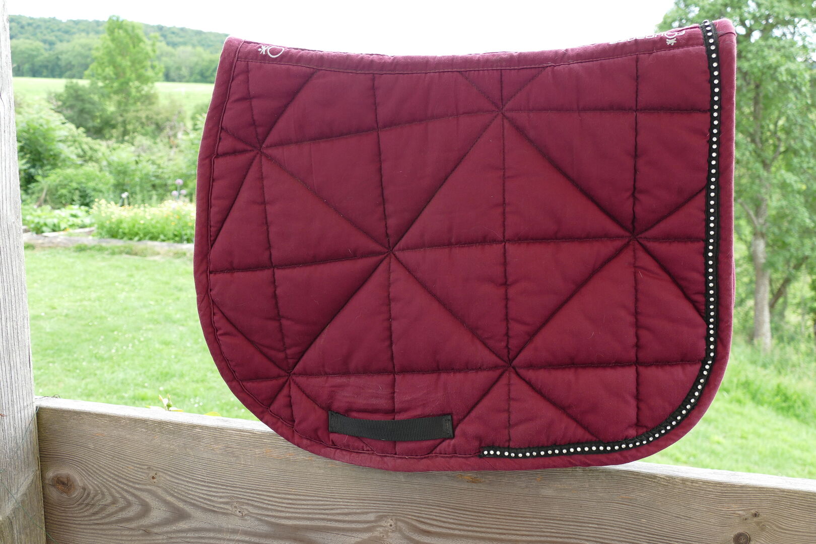 VS Zadeldekje Fouganza met Glitter - Zadeldekje in donkerrood met glinsterende steentjes. Originele prijs 30€