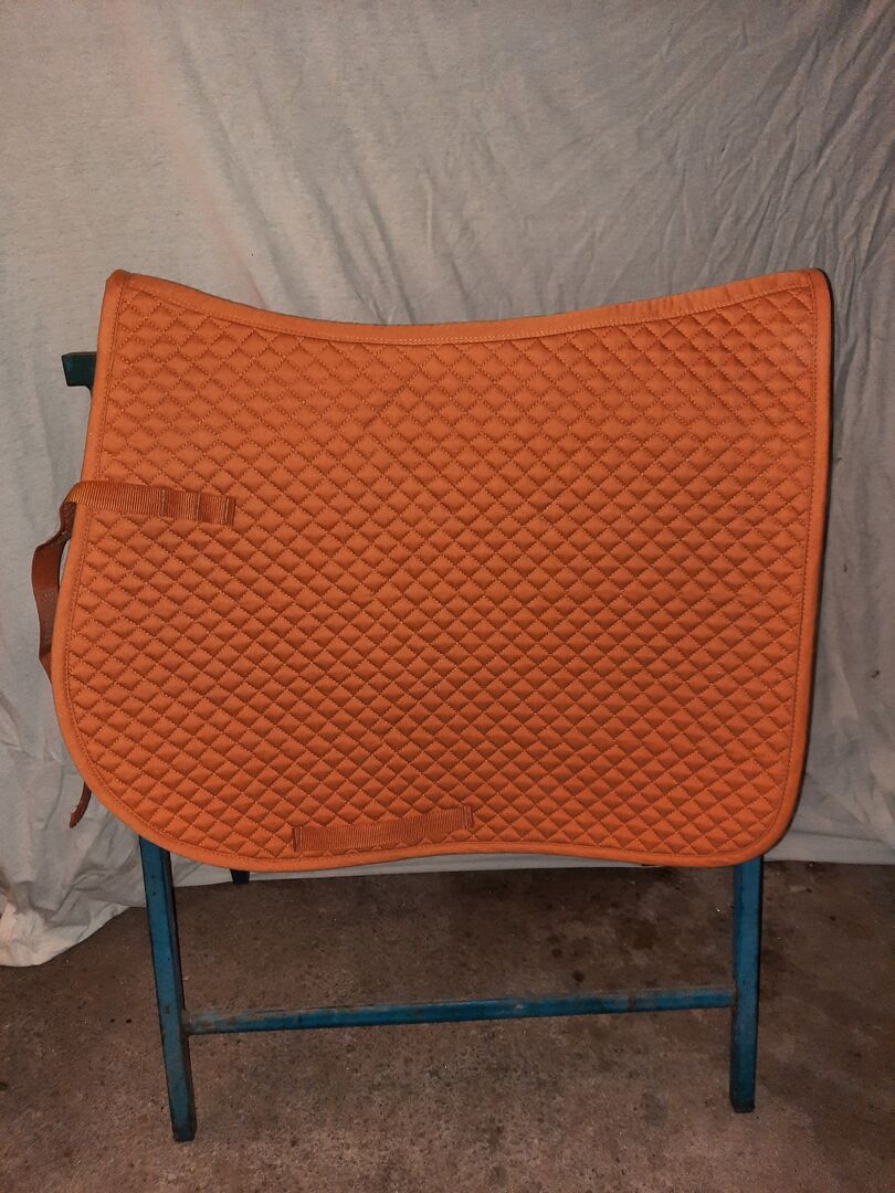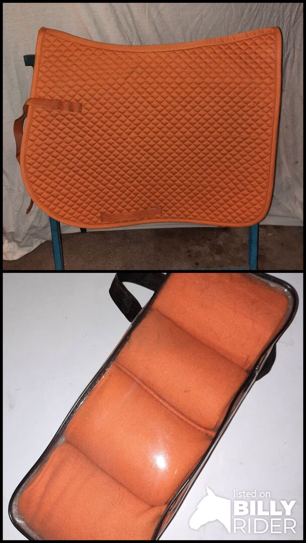 Vs Zadeldekje Oranje - Ik verkoop deze eenmaal gedragen set. De conditie is zoals op de foto's, ongewassen. Er zitten een paar haartjes op de bandages.