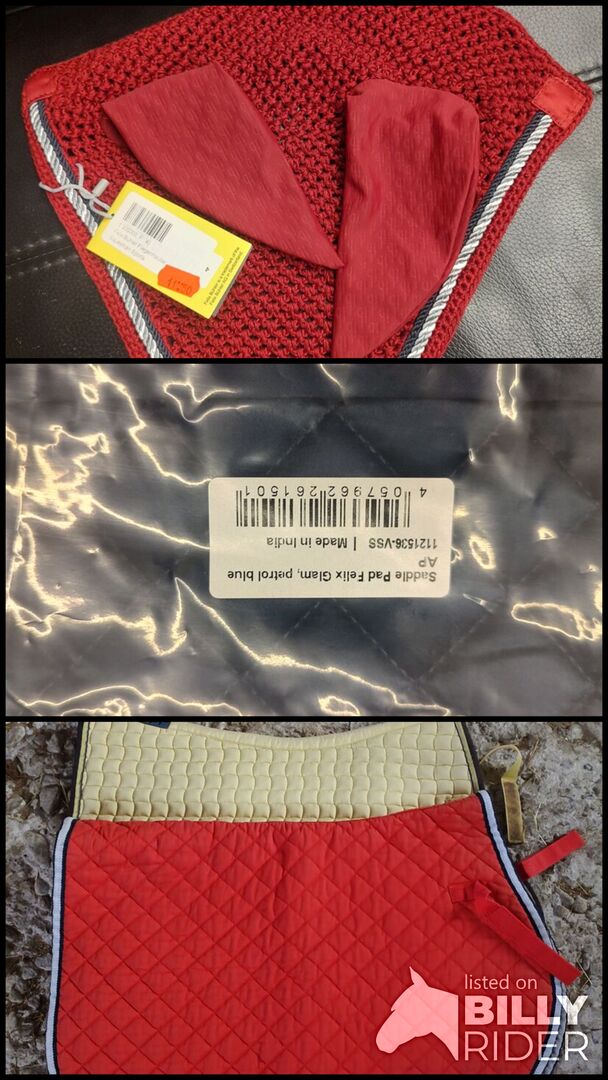 VS zadeldekjes en oorgaren - Twee gebruikte VS zadeldekjes (niet gewassen) Eén nieuw VS zadeldek plus een bijpassend nieuw oorijzer Kan apart of samen gekocht worden. Prijs is voor alles samen, exclusief verzendkosten die extra zijn.