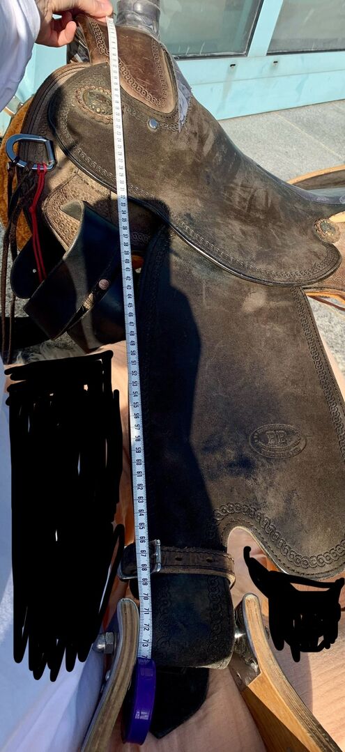 Wade Zadel BB het Merk - Kleur zitting: Inlegzitting met rozendessin Maat: 16" D-ringen: voorplaat, achterbinnenrok Conchos: 6x rozen in koper Kan ook worden opgehaald in Boven-Beieren district Weilheim-Schongau