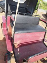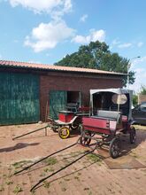 De koets is geveerd en heeft een voetrem. Hij is twee jaar geleden technisch gereviseerd en daarna helaas niet meer bereden wegens tijdgebrek en paardenwissel. Garage (droog) Zithoogte is ongeveer 102 cm Lengte koets zonder vork ca.: 217 Breedte koets ca.: 133 Hoogte - hoogste punt ca.: 191 Getoonde vork incl. Zitbreedte ca. 90 cm Wielhoogte met banden ca. 55 cm (ik bedoel 17 inch) Gewicht volgens weegschaal ca. 170 kg.
