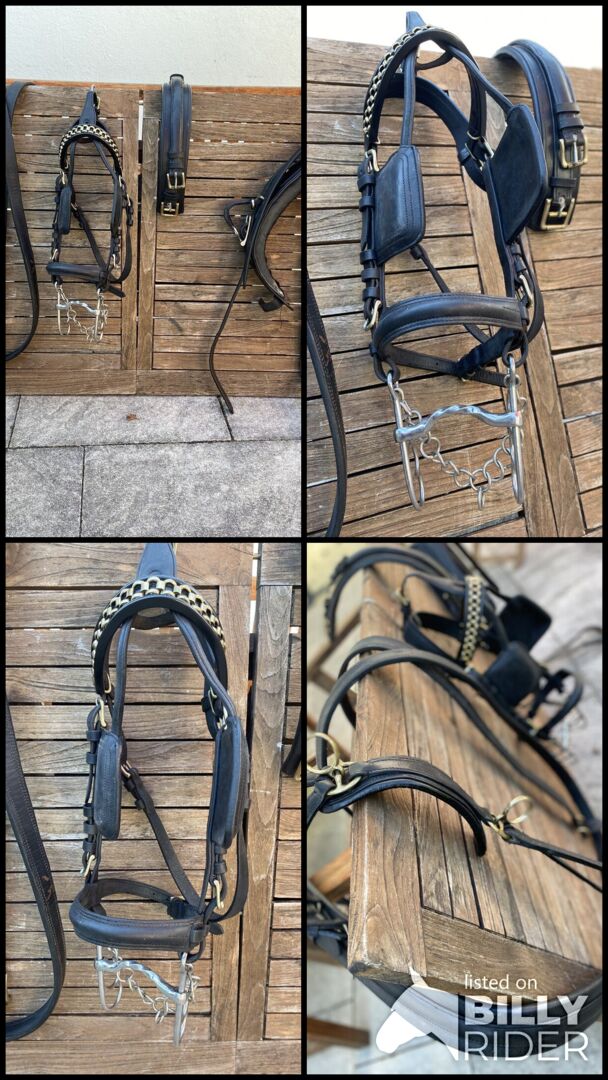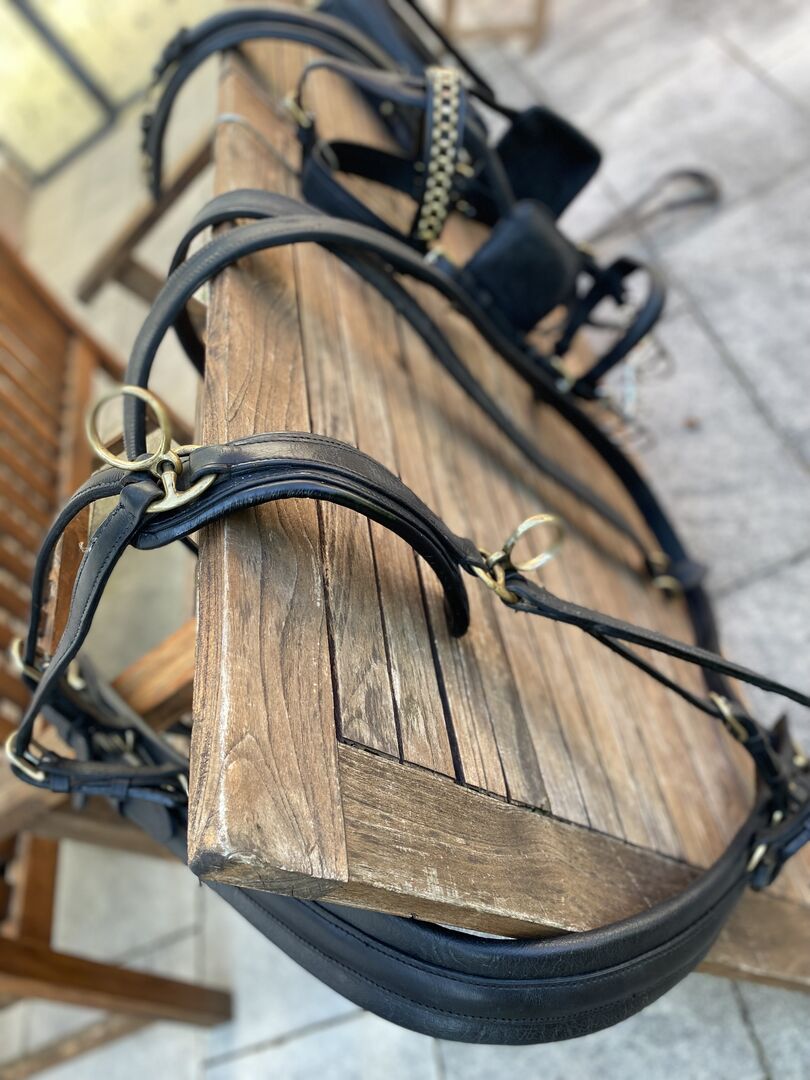 Wagenharnas zwart-gouden pony - Enkelspan pony zwart-goud om weg te geven