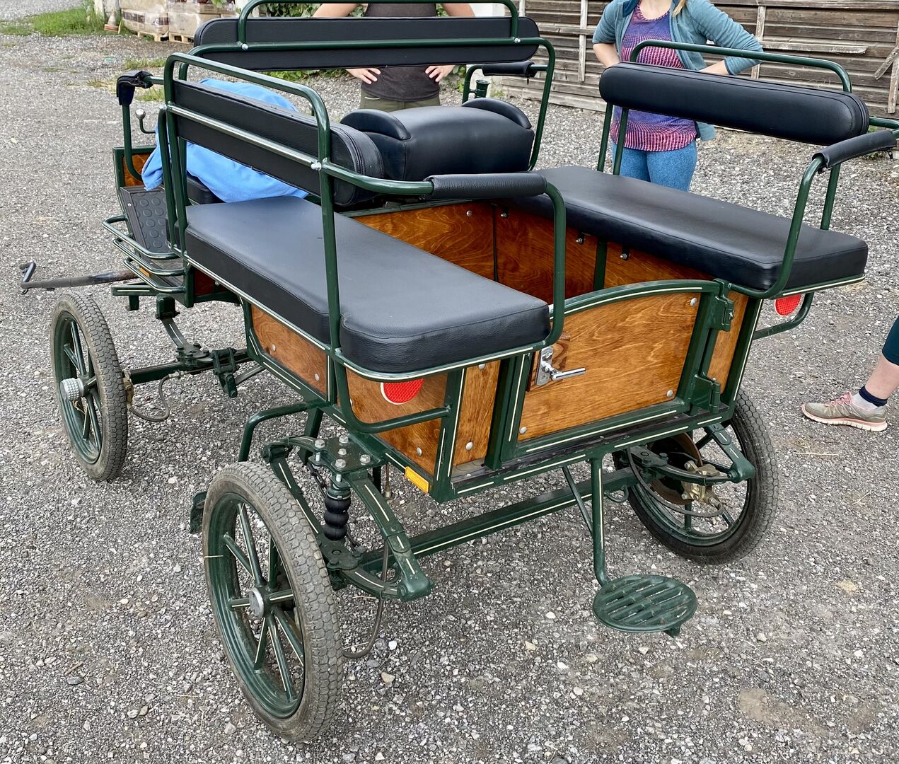 Helaas moeten we onze Wagonette wegdoen omdat hij te klein is voor ons paard. De wagonette is in zeer goede staat. -Vering, luchtvering aan de achterzijde -schijfremmen -parkeerrem -telescopische scharen -drawbar -16 inch luchtbanden