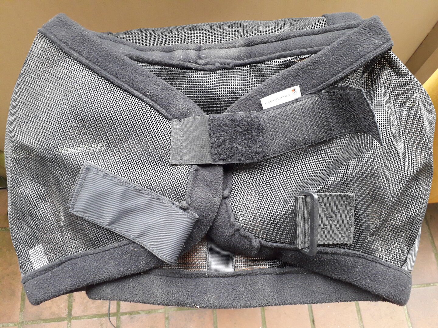 Waldhausen Premium Space vliegenmasker - Te koop een zwart vliegenmasker Premium Space van Waldhausen, zo goed als nieuw, als 1x op het paard gepast. Helaas te klein. Het masker heeft elastische inzetstukken en klittenbandsluiting voor een perfecte pasvorm, de oren van het vliegenmasker zijn van ademend gaasstof. Het heeft ook een afstandsring voor meer ruimte voor de ogen. De neusgatbescherming kan eenvoudig worden verwijderd met een klittenbandsluiting. Maat: Cob Particuliere verkoop, geen retouren of garantie. Verzending mogelijk, kosten voor de koper. Betaling via overschrijving of Paypal