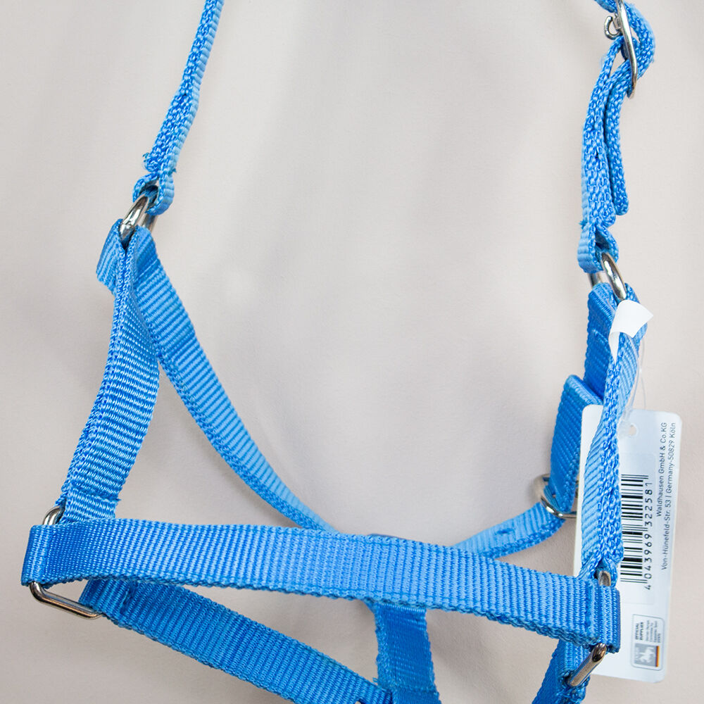 Waldhausen Veulen Halster "Perlon - De mooie turquoise halster van Waldhausen is de perfecte metgezel voor elke dag. Het is perfect als stal- of weidehalster. Het halster is verstelbaar aan de neus- en nekriem. Het heeft maat veulen. Het halster is nieuw met schild.