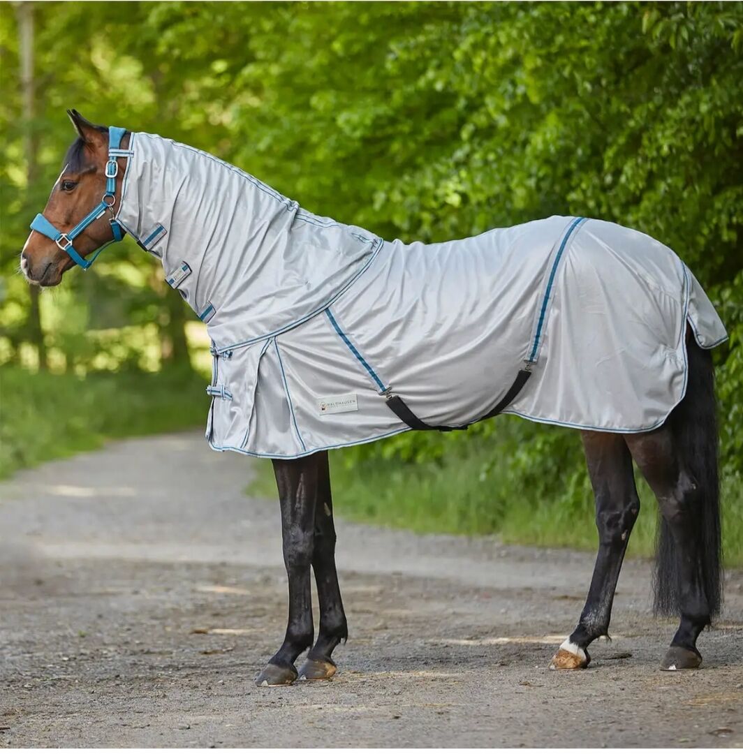 Waldhausen vliegendeken met halsdeel - Aanbieding vliegendeken voor op de wei van Waldhausen in zilver/grijs in de maat 155cm De deken heeft een halsdeel. De deken is nooit gebruikt en is gekocht als vervanging voor het geval de andere kapot gaat. Verzending mogelijk tegen een vergoeding Particuliere verkoop - geen garantie, waarborg, goodwill, retour of iets dergelijks.