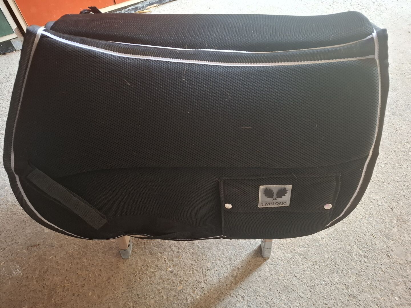 Reizende zadeldek van ademend mesh-materiaal. Versteviging bij de singel en schoft. Schokabsorberend materiaal op de rug. Twee opgestikte zakken.