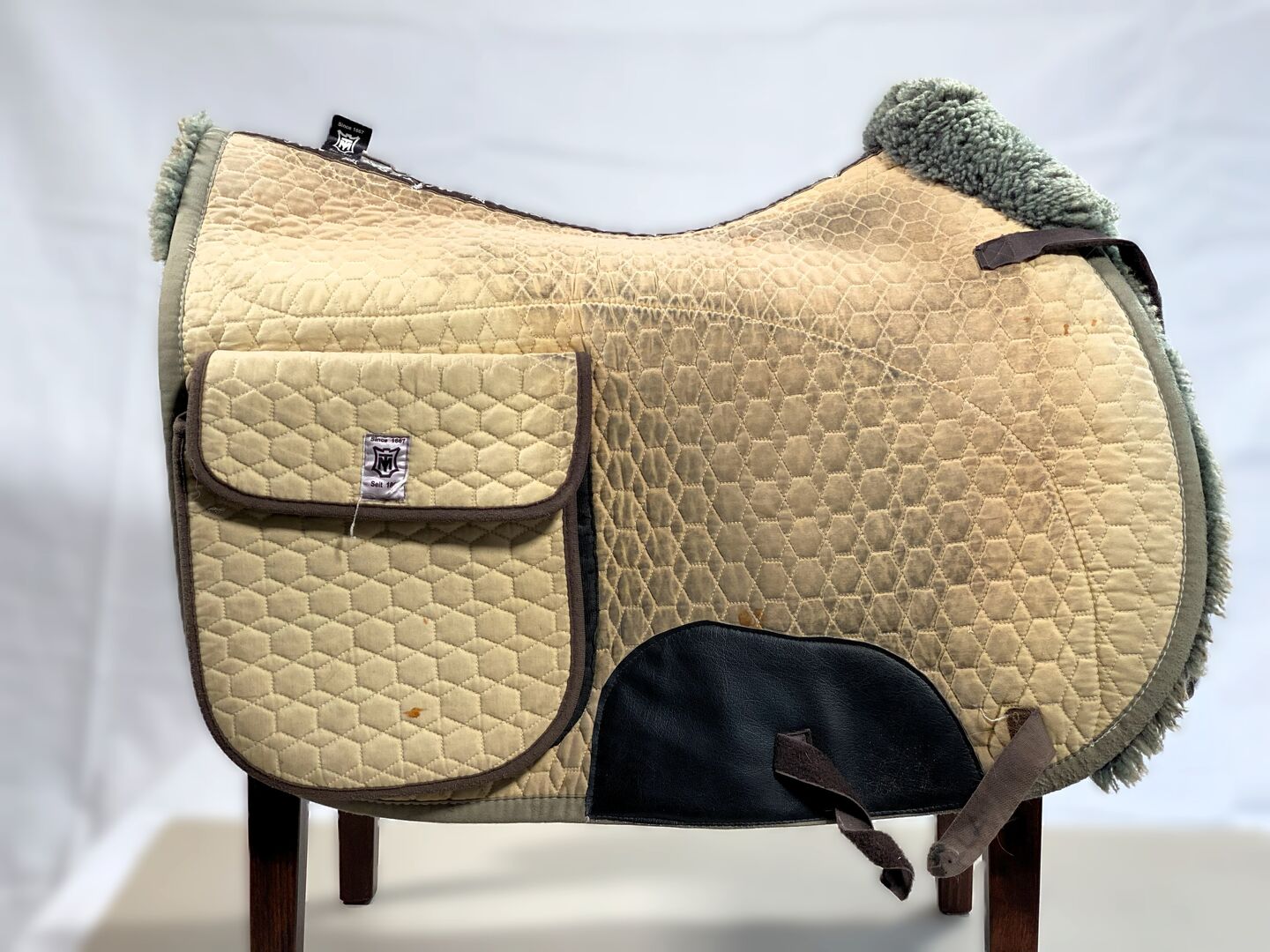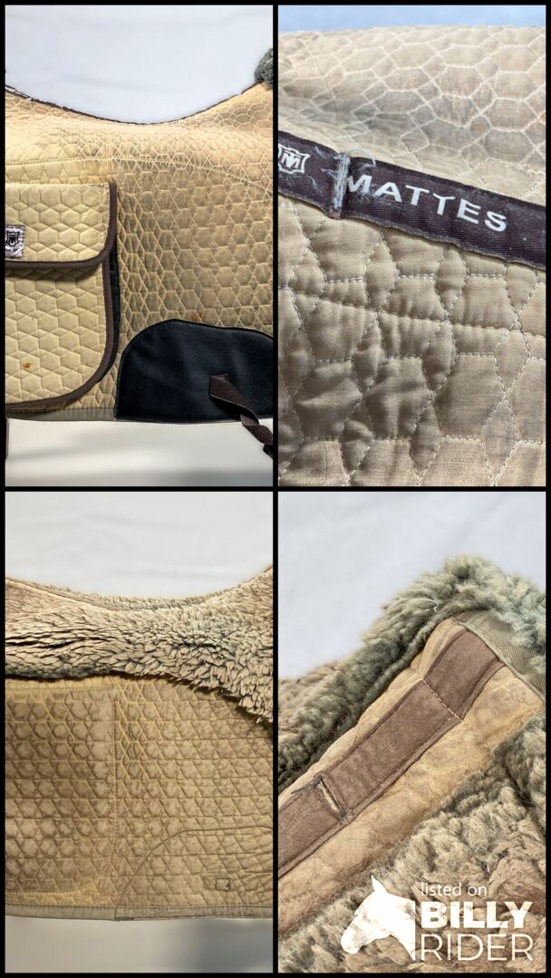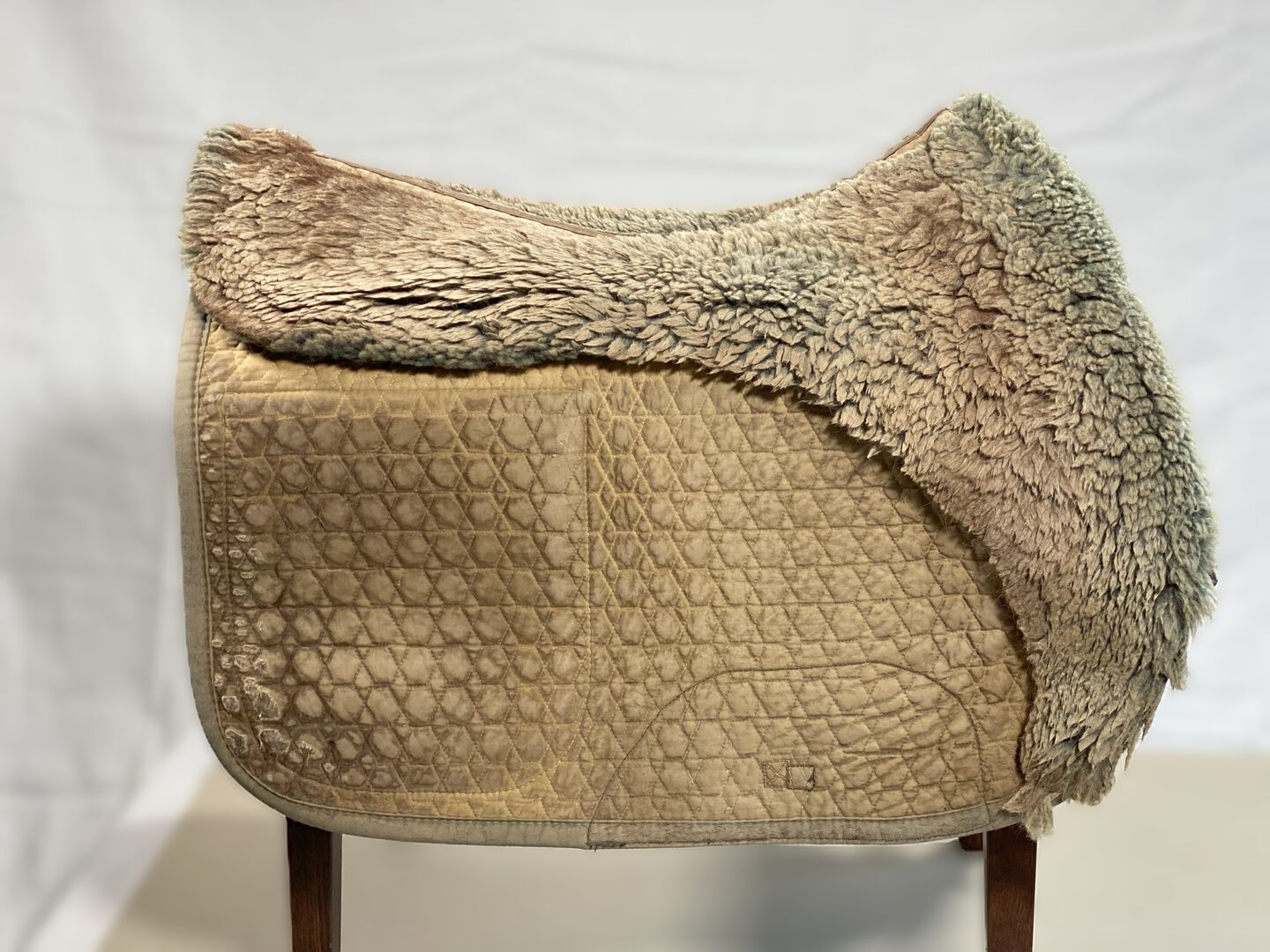 WANDERREITSCHABRACKE met lamsvel - incl. verzendkosten - MATTES WANDERREITSCHABRACKE - beige, met lamsvel. Gebruikt, fris gewassen trailriding zadeldek voor grote paarden, warmbloeden, zware warmbloeden met twee praktische buitenzakken.