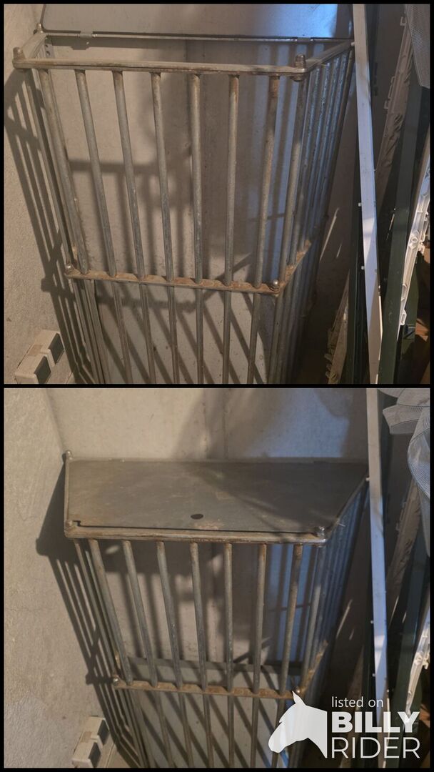 Wandhooiruif 14kg inhoud (2 stuks) - Ik verkoop twee robuuste hooirekken van gegalvaniseerd metaal. De rekken zijn ideaal voor paardvriendelijk voeren (langzaam voeren via het rooster) en kunnen dankzij hun ontwerp zeer ruimtebesparend in de box of schuilstal worden geïnstalleerd.