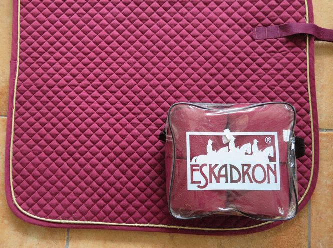 Mooie kleurencombinatie, het zadeldek lag maar 1 x op het paard, is absoluut nieuw en van zeer goede kwaliteit, robuust en niet zo'n dun, 'baggy' ding. De fleece bandages zijn ook in TOP conditie. Set zadeldekjes incl. bandages - prijs is voor de complete set. Verzending voor 6€
