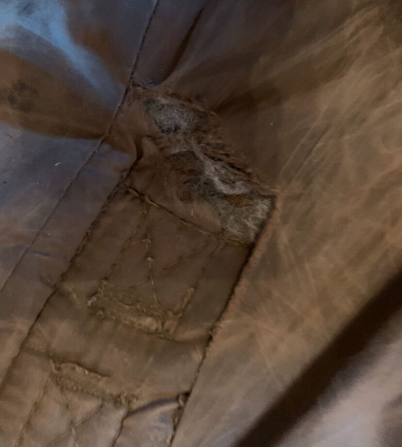 WeatherBeeta regenhoes 145cm - Ik verkoop een Weatherbeeta deken in goede staat in de maat 145cm. De deken heeft ongeveer 50-100g, helaas weten we dat niet meer precies. De binnenkant van een kant van de deken is een beetje beschadigd. Maar dit kan genaaid worden. Aan de buitenkant aan de achterkant is het al vastgenaaid. De deken wordt ongewassen geretourneerd.