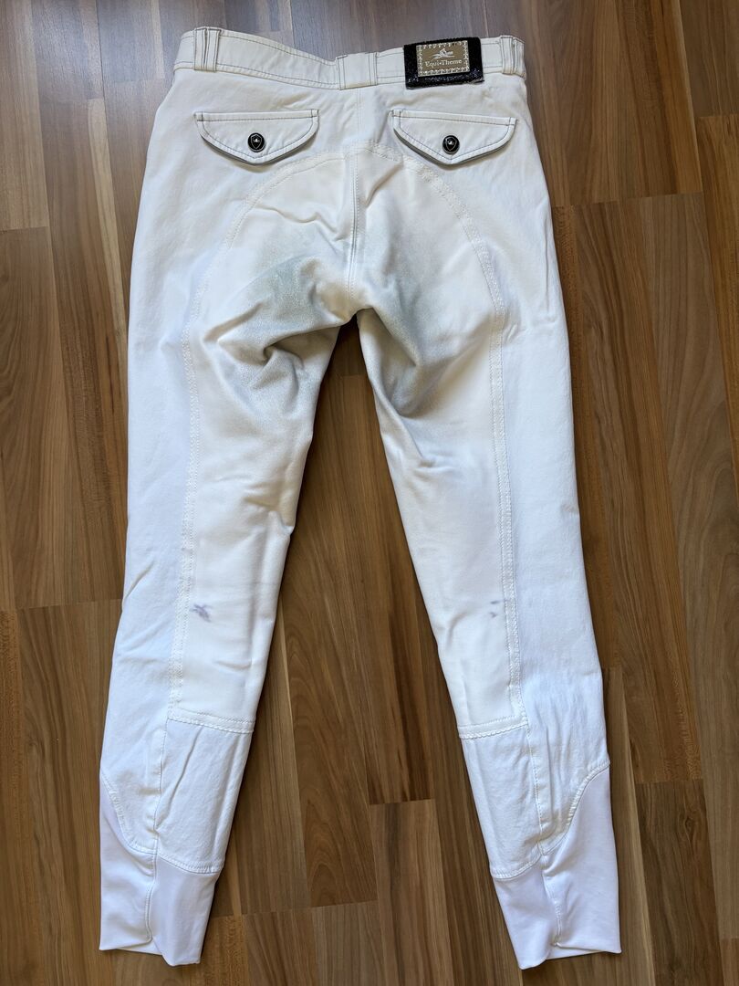 Wedstrijdbroek maat 38 - Ik verkoop een witte leren full seat wedstrijdbroek van Equi Theme in maat 38. De broek is met plezier gedragen en heeft lichte sporen van slijtage van het zadel. Voor de rest zijn ze volledig functioneel en in goede staat.