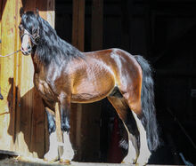 ...springt onmiddellijk in het oog met zijn onvergelijkbare aanwezigheid & chic en belichaamt het perfecte originele type van de Welsh C pony. Hij is gefokt uit oud-Engelse, gefundeerde bloedlijnen en dat zie je terug in zijn hele verschijning. Een ongelooflijk getypeerde ponyhengst die in Engeland is goedgekeurd onder de naam "Three-B William". Hij beschikt over bovengemiddelde basisgangen en een zeer fijn, attent interieur.