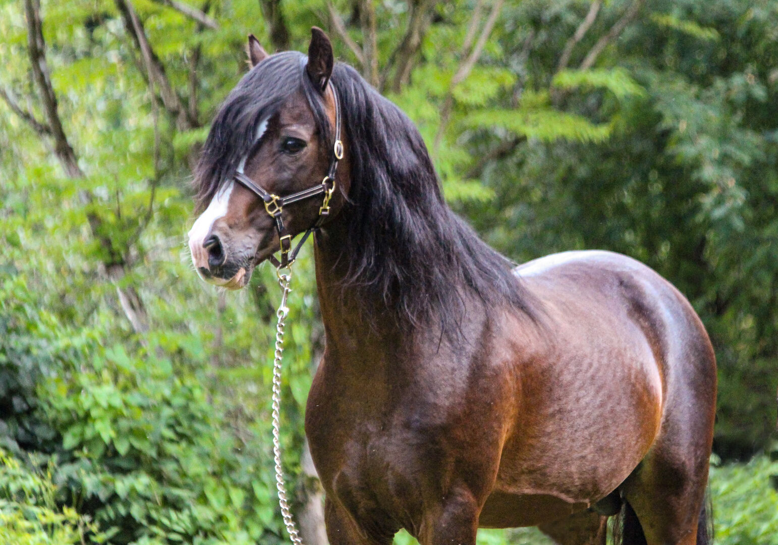 Welsh Cob sectie C, hengst, 19 jaar oud, zwartbruin met vier witte voeten, 1,34m Stm. - #Uitmuntendewelshc hengst #ponyfascinatie