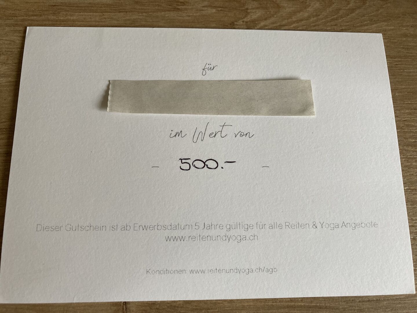 Das ideale Geschenk für Pferde- und Yogabegeisterte: Ein Wertgutschein über CHF 500,- beim Anbieter "Reiten und Yoga" "Reiten & Yoga" bietet verschiedenste Urlaube in aller Welt an. Alle Angebote auf www.reitenundyoga.ch oder auf Instagram. Aus privaten Gründen kann ich den Gutschein selbst nicht einlösen. Bei Bedarf leite ich gerne eine Bestätigung des Anbieters über die Gültigkeit des Gutscheins weiter.
