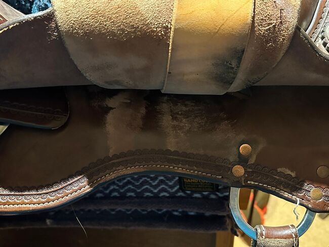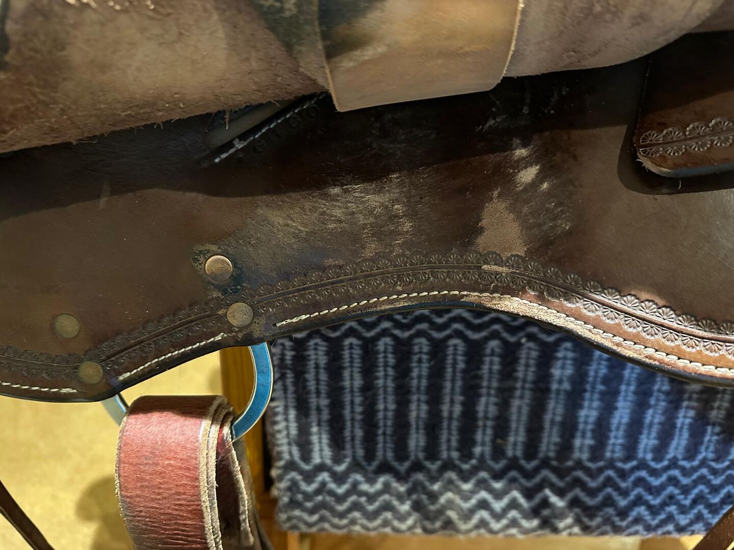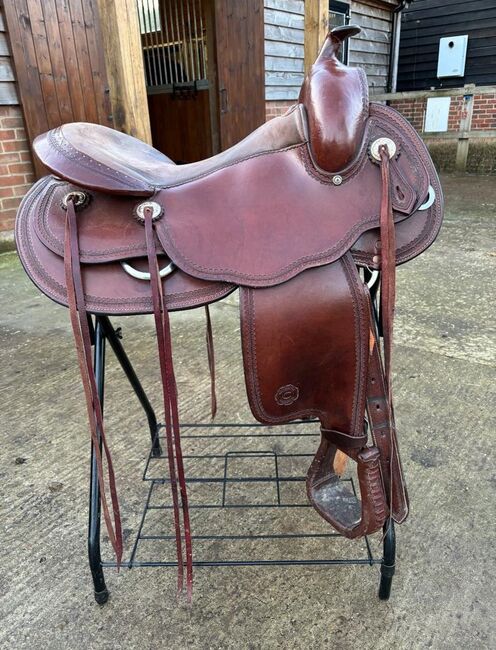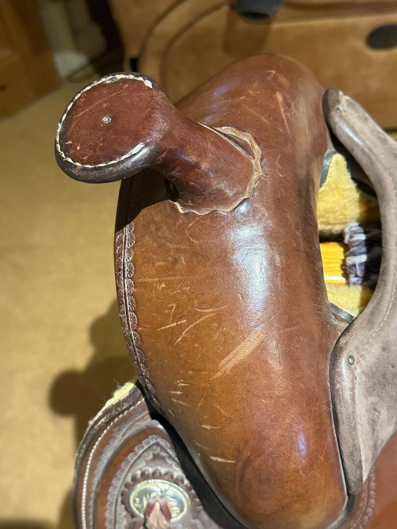 Western saddle as no longer required due to sad loss of our lovely Appaloosa. The saddle is in good condition with usual signs of wear, as shown in the photos.