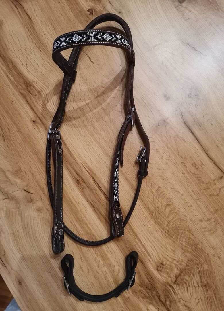 Western knevel met parels - Mooie western snaffle met zwarte en witte parels. Vorig jaar gekocht bij de Americana, maar twee keer gebruikt, maar toen overgestapt op een sidepull. De snaffle is te goed om rond te liggen.