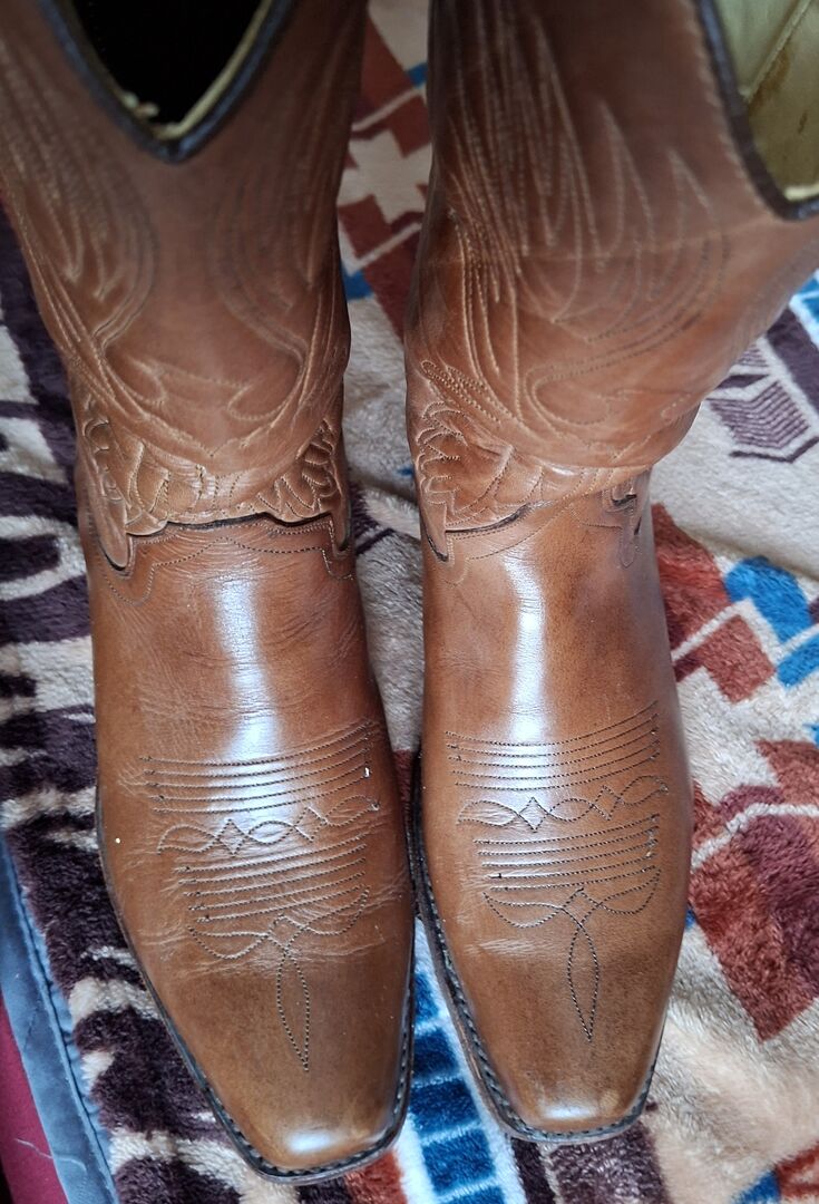 Western laarzen cowboylaarzen Tony Mora maat 8 1/2 (41-42) - Ik verkoop een paar westernlaarzen van Tony Mora maat 41-42 (8 1/2) De laarzen zijn versleten maar in goede staat. De zolen moeten opnieuw worden gedaan om de naden te beschermen. Zie foto's voor tekenen van slijtage.