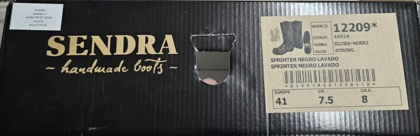 Western laarzen Sendra Laarzen Sprinter Negro Lavado Gr.41 - Ik verkoop een paar hoogwaardige, stabiele, handgemaakte westernlaarzen van Sendra Boots Sprinter Negro Lavado maat 41 Kuitomtrek 38,5 cm Met originele doos.