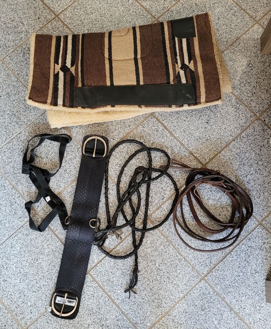 Verkoop deze geweldige spullen Nieuw weide halster veiligheids halster gr VB 5 Euro Gevlochten teugels open zwart 20 Euro Open leren teugels bruin 2,50 m 28 Euro Zadelsingel 28 inch 25 Euro Westernpad 75 cm x 38 cm 2 cm dik 50 Euro Alles bespreekbaar