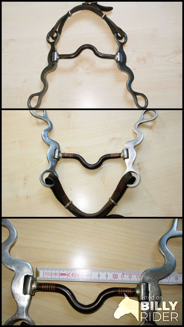 Western snaffle hoofdstel snaffle bit Western paardrijden - Vanwege de overstap naar bitloos rijden verkoop ik mijn zeer goed onderhouden en schoongemaakte westerncurbit met leren kinriem. De bitbeugel is 13 cm lang. Het bit werd gedragen door mijn Anglo-Arabische ruin, die een maatje Cob/thoroughbred heeft.