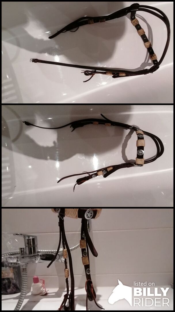 Western wurgslang - Westernhoofdstel van geolied kwaliteitsleer met mooie versieringen/conchos sheriffster.