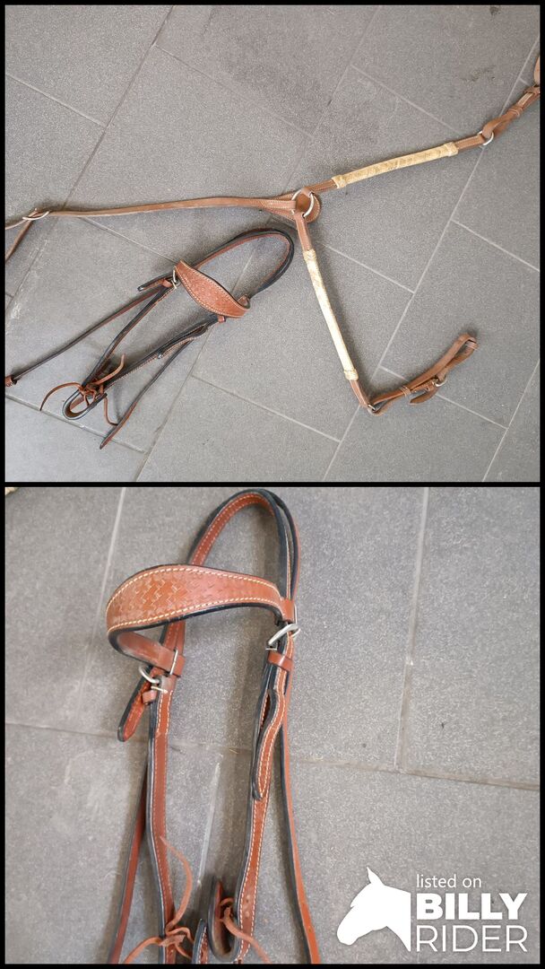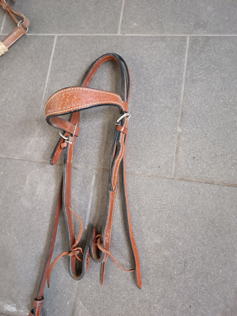 Western wurgslang - Western snaffle en borstplaat, het leer is helaas vrij stug en heeft wat liefde nodig, verder is het prima. Ook apart te koop.