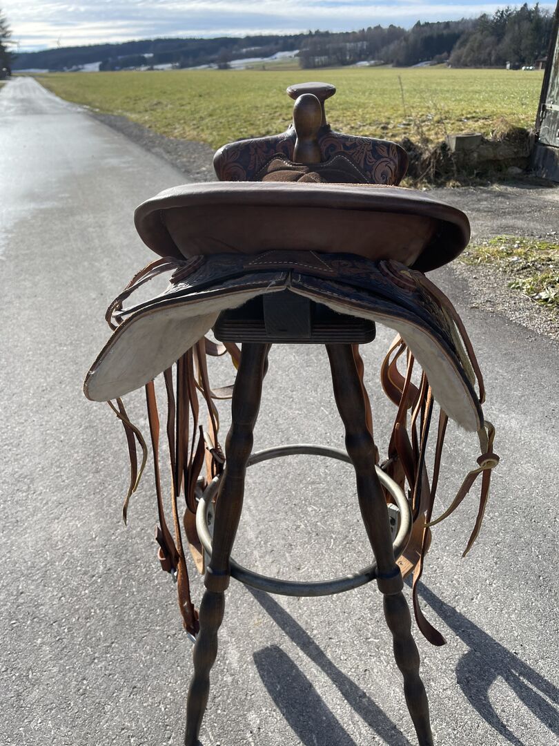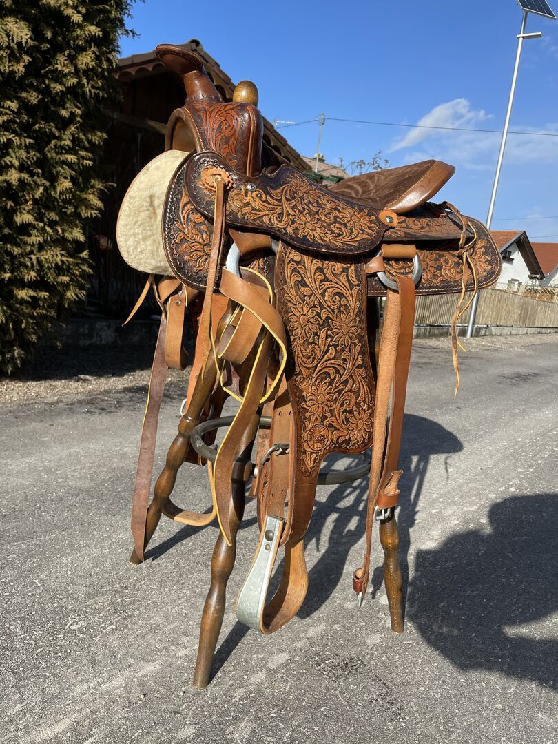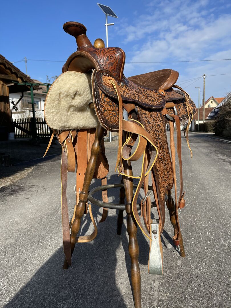 Western zadel - Ik verkoop een prachtig Amerikaans westernzadel in perfecte staat. Helaas is het te smal voor mijn paard en gaat daarom weg (hoewel het echt een goede decoratie is).