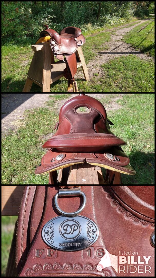 Western zadel - Wegens verandering van rijstijl verkoop ik mijn Flex Fit Vario 1330 westernzadel, gekocht in september 2020, dat zo goed als nieuw is en zeer comfortabel, uit de lijn "Classic Line Pro" van Deuber & Partner. De breedte van de slokdarm is traploos instelbaar. De benodigde inbussleutel wordt meegeleverd. Zitmaat 16", roklengte 64,5 cm. Niet standaard bij het model zijn de rugcinch tuigage, de extra zachte vulling van de zitting en de 6 kleine D-ringen (zonder latigo touwtjes). De gewichtsopgave van de fabrikant is 13,5 kg. Originele factuur en garantiebewijs zijn aanwezig. In totaal heeft het zadel ongeveer 10 keer op het paard gezeten. De oorspronkelijke prijs was 2559,45 Euro.